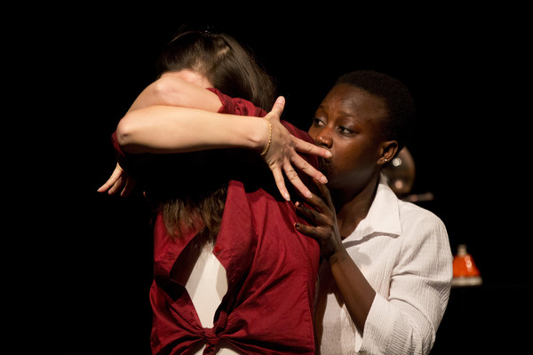 Nous avons créé deux formes de ce texte, celle que nous présentons ici est directe, jouée en pleine lumière uniquement avec l’espace nécessaire. Elle repose sur le jeu intense des actrices sans fard, ni scories, et se concentre sur l’action et le texte. Elle correspond, à la fois au lieu, à l’économie qu’engendre le festival et s’ouvre à un réseau de diffusion plus large que celui des salles de spectacle (médiathèque, salle de classe, centre social).